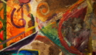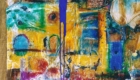 Various mixed media styles with the use of: oil stick, wax encaustic, plate glass destruction/reconstruction, fresco staining (oil and tempera), paper collage, waterborne acrylic thrown on hot wax surfaces, common table salt and roof tar patch material. Texture experiments with how different materials interact through the artistic process .