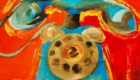 Cat Dog Canary, Oil on panel