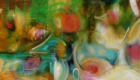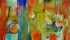 Oil painting on panel: oil mixed with alcohol, then rubbed onto thin birch panel board. Copper patina, exterior oil based enamel and oil bar add texture and a decorative finish.