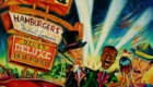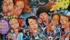 Debonair Deluxe (Fred Astaire , Louis Armstrong and Frank Sinatra at Dick's Drive-In), Oil on glass